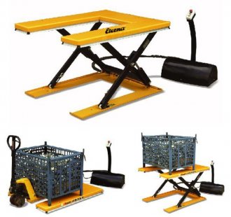 Plataforma elevadora en forma de "u". Ideal para manipulacion de palets sin necesidad de un pozo. |