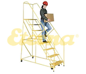 Escalera rodante de hierro. Con o sin plataforma. Ideal para trabajo seguro en depósitos, supermercados, fábricas, etc.