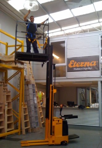 Plataforma de acople rapido. Ideal para tareas de mantenimiento, picking de mercaderías. Con piso antideslizante y baranda perimetral. Para usar con apiladores y autoelevadores
